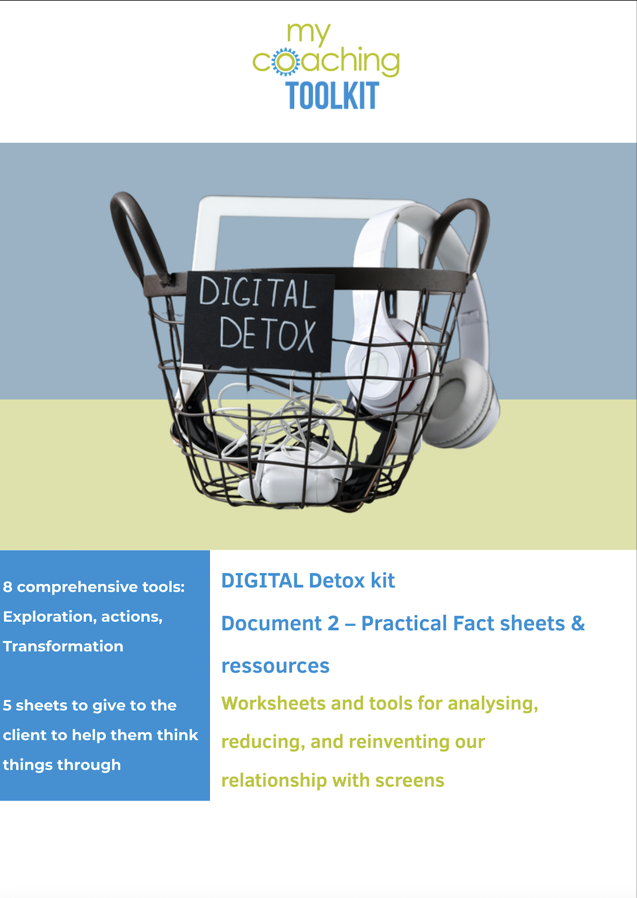 This kit was designed to enable coaches to guide their clients in analyzing, adjusting, and transforming their relationship with digital technologies.